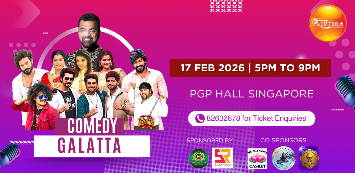 Join an energetic lineup of popular comedy and entertainment artists as they take the stage for Comedy Galatta, a vibrant live show packed with humour, music, and performances.